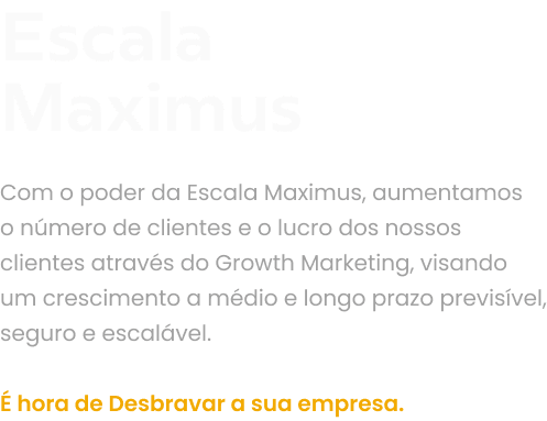 Com o poder da Escala Maximus, aumentamos o número de clientes e o lucro dos nossos clientes através do Growth Marketing, visando um crescimento a médio e longo prazo previsível, seguro e escalável.